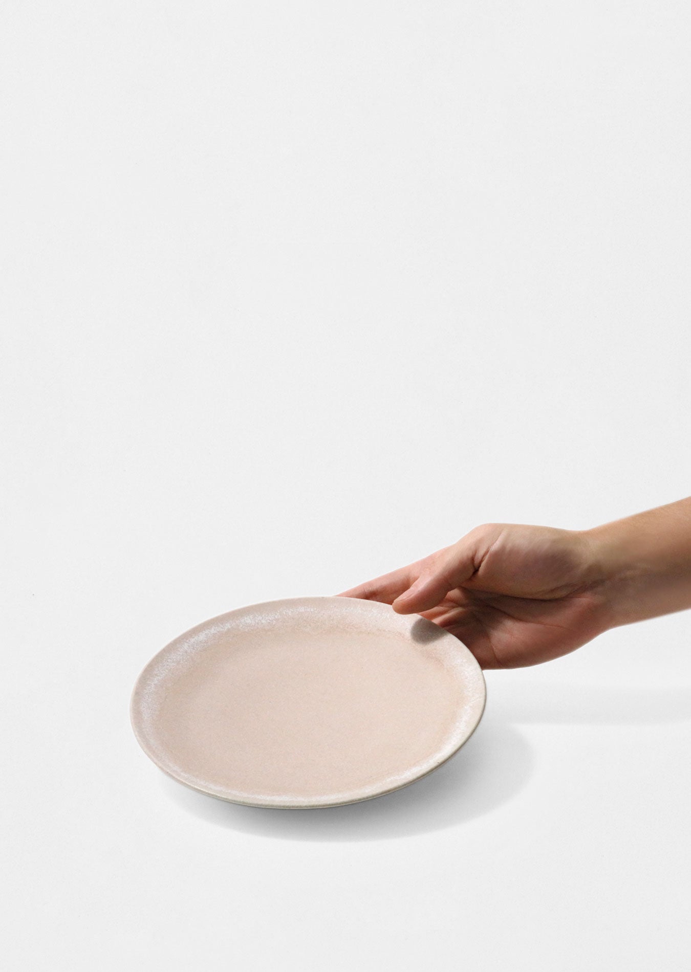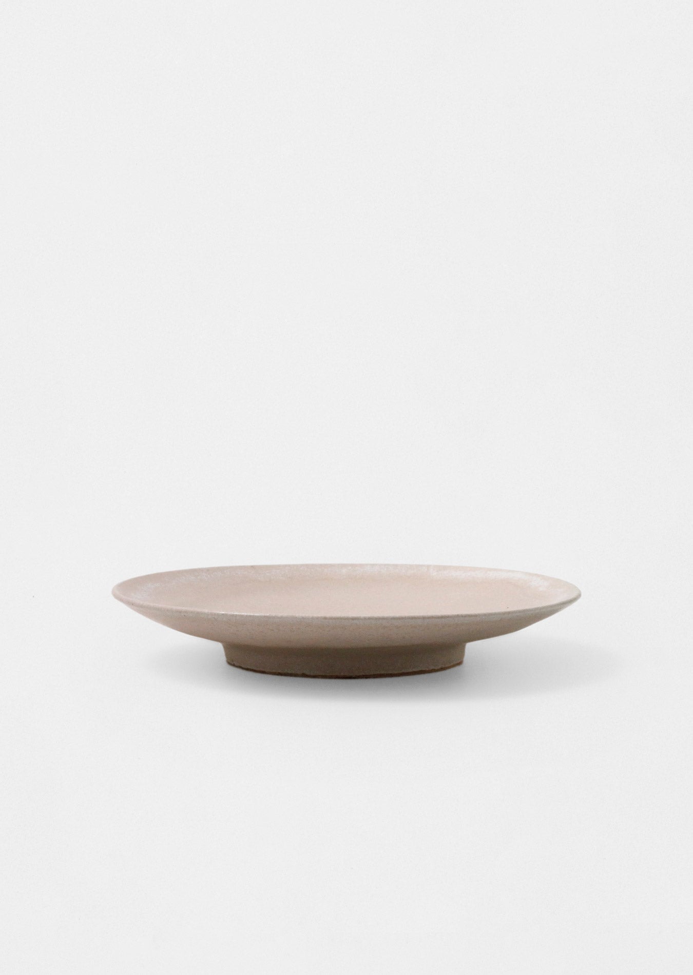 流れる淡い桜色をまとった6寸皿。優しいグラデーションと柔らかいシンプルフォルムが、深みのある印象をもたらします。釉薬のムラの濃淡も美しく、揺らぎのある色感も魅力。手にした時にしっとりとした不思議な感触があります。