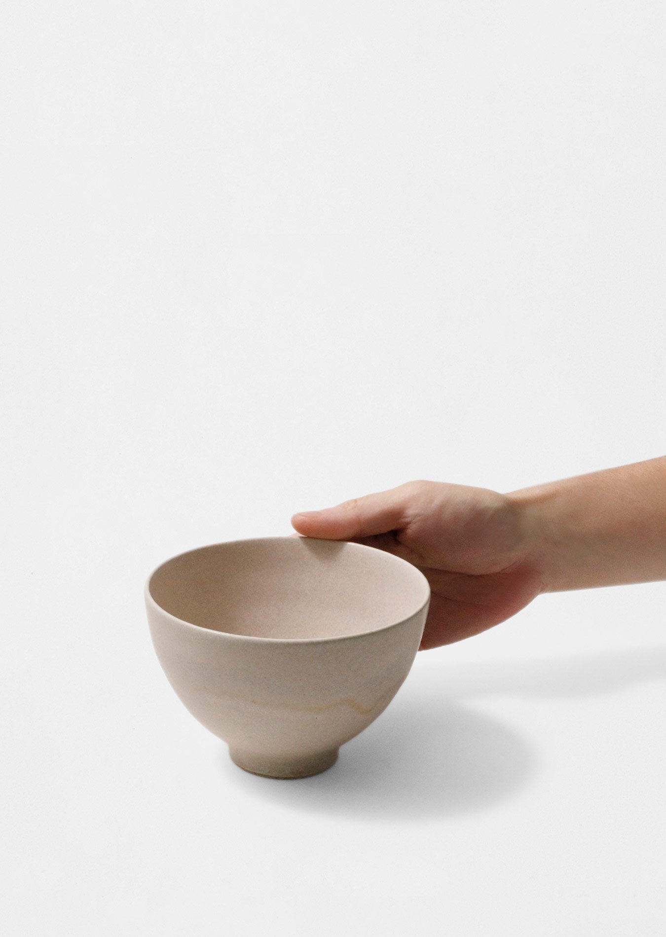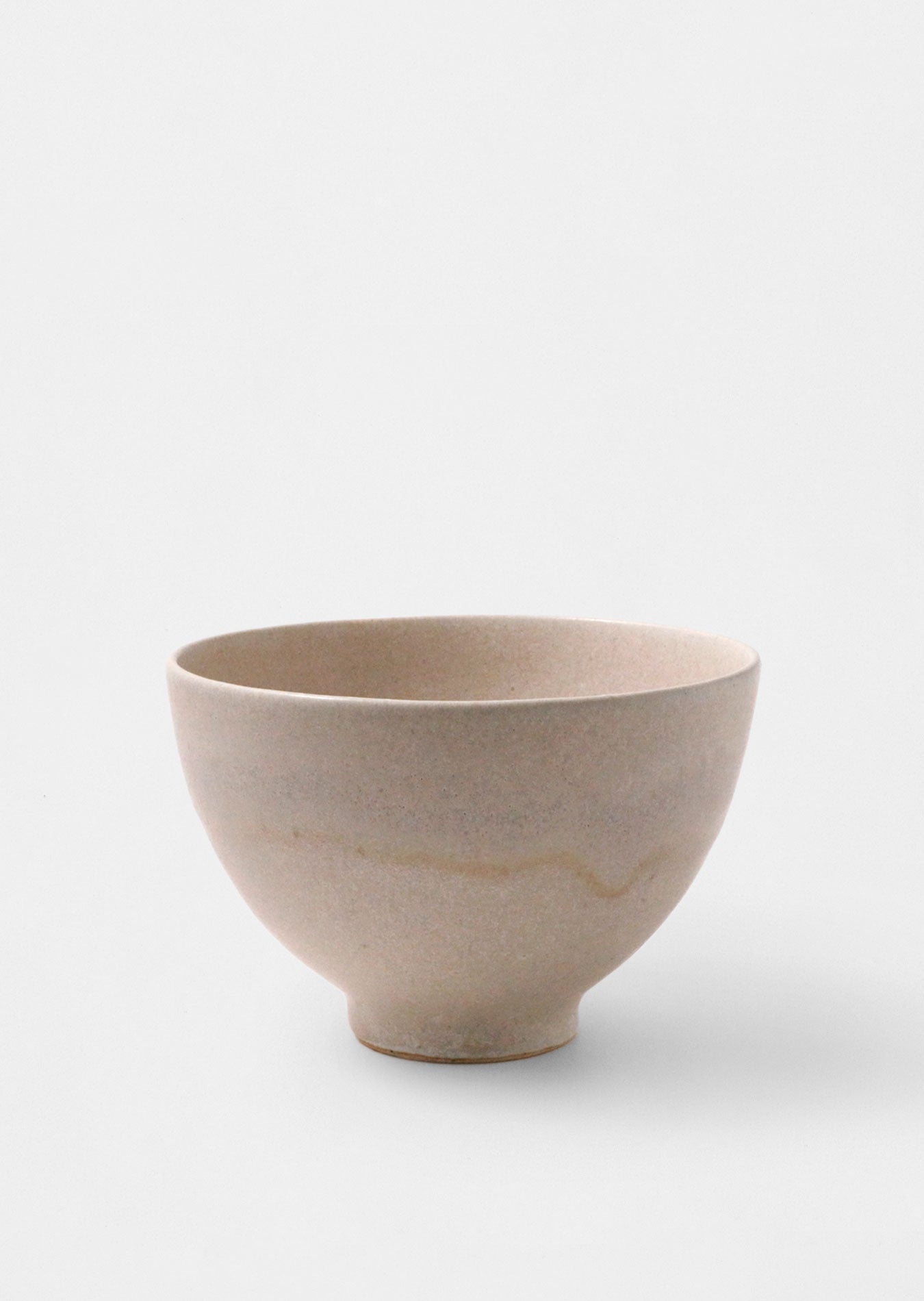 流れる淡い桜色をまとった深鉢。シンプルながら、優しいグラデーションとぷっくりとしたフォルムが、深みのある印象をもたらします。釉薬のムラの濃淡も美しく、揺らぎのある色感も魅力。手にした時にしっとりとした不思議な感触があります。